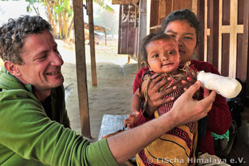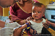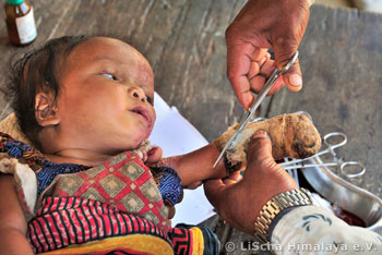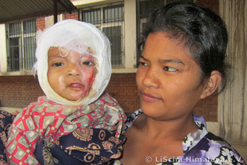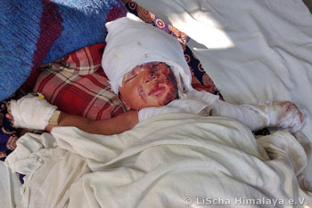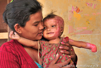 Sonika verbringt zwei Monate in der Klinik, bevor sie vorübergehend nach Hause entlassen werden kann. Vier Monate lang geht die Mutter mit ihr jeden zweiten Tag den weiten Weg ins Tal um die Verbände der Wunden wechseln zu lassen.