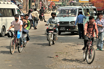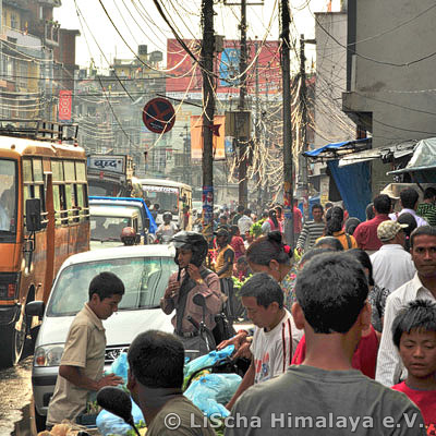 Ich hatte vorab durch die Berichte und Bilder der beiden LiScha-Initiatoren, Daniela Jährig und Steffen Schöley, natürlich einen gewissen Einblick in die Projektarbeit erhalten, wusste also ungefähr, was mich erwarten würde. Das dachte ich jedenfalls. Es war schon länger geplant, dass ich die beiden irgendwann einmal in ferner Zukunft besuchen werde. Doch dass es so schnell geht, hätte ich nicht erwartet. Um mir also selbst ein Bild zu machen und nicht nur aus den Erfahrungen anderer erzählen zu müssen, beschlossen wir, die mir gebotene Chance eines dreiwöchigen Praktikums in Nepal zu nutzen. Gesagt, getan, ich flog hin. Doch was mich dort bei meiner Ankunft in Katmandu, Nepals Hauptstadt, erwartete, verschlug mir sprichwörtlich die Sprache!