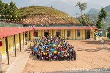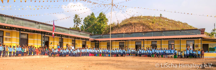 Die Schule in Bangrang liegt auf einem der steilen Bergkämme Kankadas, nur über schmale Pfade erreichbar. Knapp 90 Kinder besuchen diese kleine Schule, die bis zur 5. Klassenstufe die Schüler*innen beschult. Den Erdbeben 2015 fielen beide Schulgebäude zum Opfer. Den Schüler*innen und Lehrer*innen stehen nun sechs helle, große, freundliche und vor allem erdbebengerechte Unterrichtsräume, ein Kindergarten, ein Lehrerzimmer, eine Schulküche, Toiletten und ein Schulhof zur Verfügung.