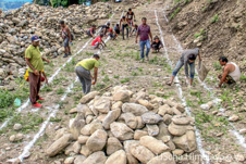 Die Schule in Makaldamar ist eine kleine Grundschule für knapp 100 Kinder, die während der Erdbeben schweren Schaden genommen hat. Bis zum Baubeginn war die Schule nur zu Fuß erreichbar. Um die Baumaßnahmen zu erleichtern, haben wir in Zusammenarbeit mit der Dorfbevölkerung eine schmale Piste bis zum Bauplatz gebaut.