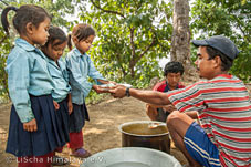 Unsere Projektregion, der Landkreis Kankada, ist der einzige Lankreis Nepals, in dem flächendeckend und für jedes Schul- und Kindergartenkind täglich diese wertvolle Mahlzeit angeboten wird.